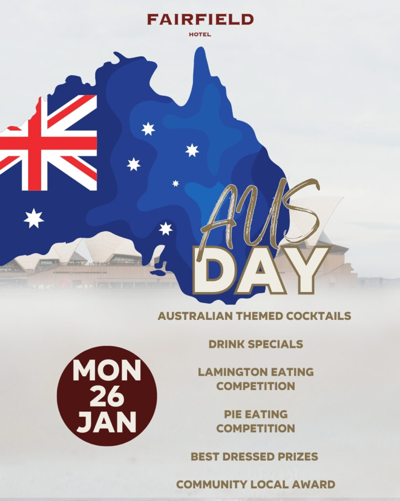 FAIRFIELD hotel is open seven days a week, offering a RELAXED VENUE with A FUNCTION SPACE and catering for all celebrations, your favorite sports on the big screens, delicious drinks and fantastic food!